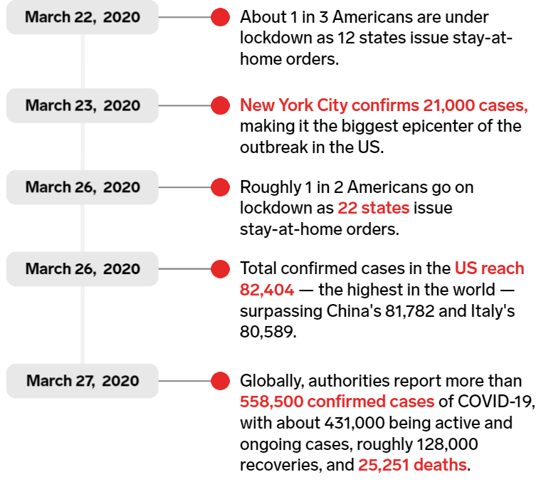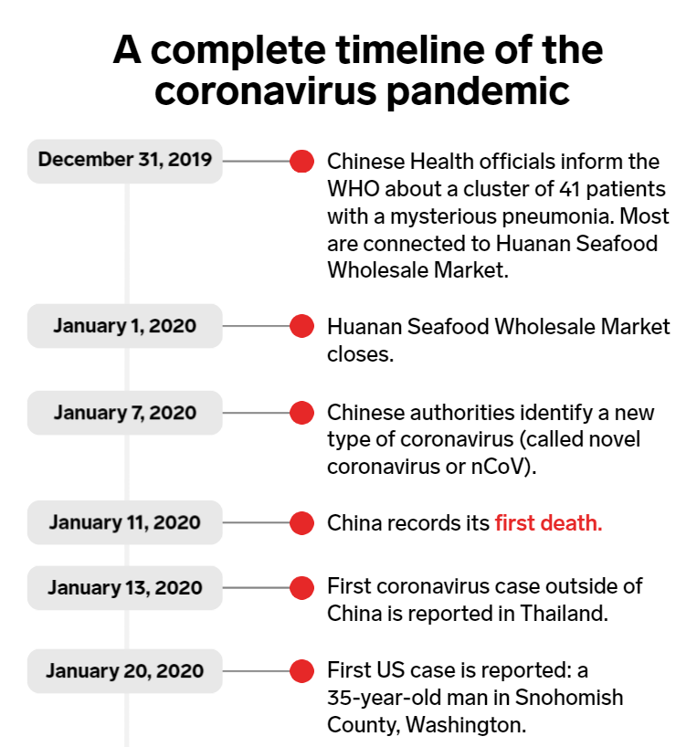 Holly Secon, D., 2020. A comprehensive timeline of the new coronavirus pandemic, from China’s first COVID-19 case to the present. [online] Business Insider Australia. Available at: <https://www.businessinsider.com.au/coronavirus-pandemic-timeline-history-major-events-2020-3?r=US&IR=T> [Accessed 1 Apr. 2020].